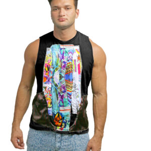 SKU: SKU-MensBlackPatchworkMixedArtPrintTankTop