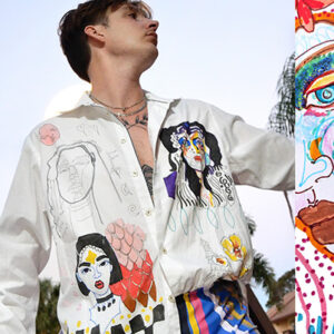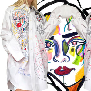 Each customized, one of a kind, using thrifted/vintage mens button downs that I draw directly onto the fabric with.